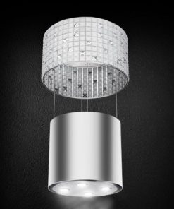 Máy hút mùi trang trí treo cáp Amara, hình trụ tròn, chế tạo bán thủ công kết hợp giữa Inox 304 và pha lê trang trí.