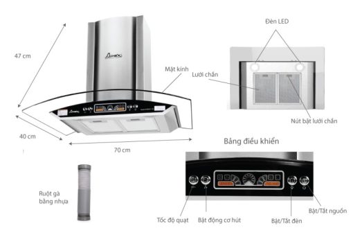 THÔNG SỐ KỸ THUẬT MÁY HÚT MÙI KÍNH CONG SUNHOUSE APEX APB6601 70C
