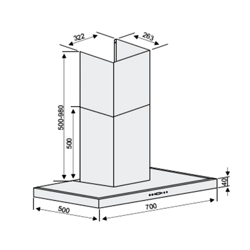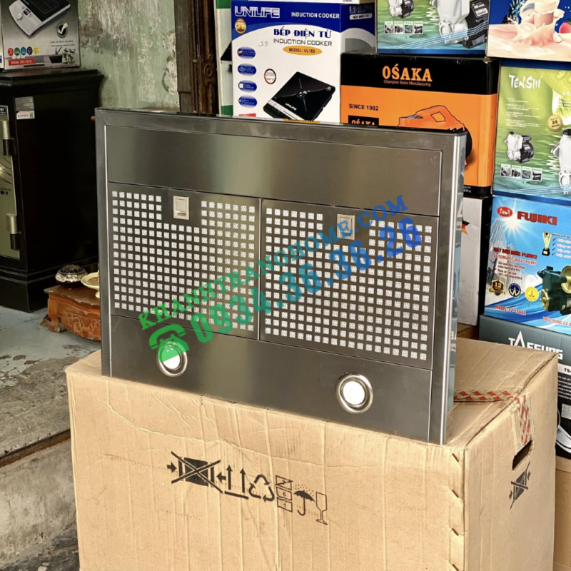 - Kiểu dáng: Máy hút mùi kính gắn tường, mặt kính phẳng