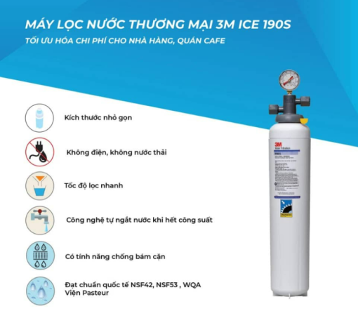 - Máy lọc nước 3M ICE190-S là một lựa chọn xuất sắc cho các doanh nghiệp trong ngành nhà hàng, khách sạn, quán cà phê và cơ sở dịch vụ khác. Với công suất lớn lên đến 204.412 lít và lưu lượng nước qua bộ lọc ổn định ở mức 18,9 lít/phút, sản phẩm này đảm bảo cung cấp nước sạch và an toàn cho nhu cầu sử dụng hàng ngày.