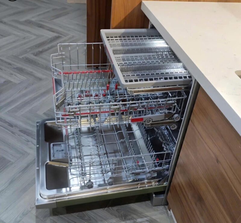 - Bảng điều khiển cảm ứng và màn hình LED hiện đại không chỉ giúp người dùng dễ dàng thao tác máy mà còn cung cấp thông tin chi tiết về quá trình rửa. Hệ thống giỏ rửa Max Flex linh hoạt và kệ rửa dao thìa dĩa Vario Drawer tối ưu hóa không gian bên trong máy, giúp sắp xếp đồ dùng một cách thuận tiện.