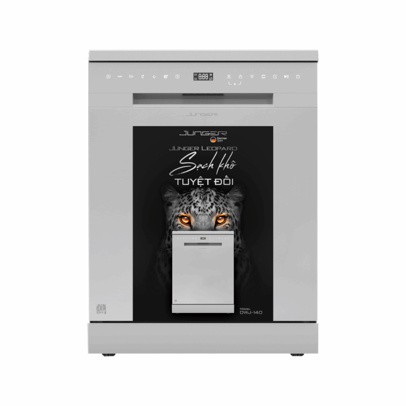 - Junger Leopard DWJ-140 còn được trang bị nhiều công nghệ hiện đại như công nghệ sấy nóng Junger Super Dry Tech, công nghệ khử trùng/diệt khuẩn bằng tia UV Junger UV Virus Killer Tech, và công nghệ khử mùi bằng gió tươi đối lưu Fresh Air, tạo ra một quá trình rửa bát an toàn, hiệu quả và tiện lợi.