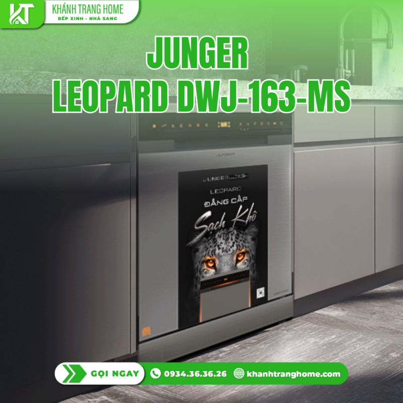 - Máy rửa bát JUNGER Leopard DWJ-163-MS là một lựa chọn lý tưởng cho các gia đình hiện đại nhờ khả năng rửa đến 16 bộ châu Âu – tương đương khoảng 4-5 bữa ăn Việt. Thiết kế âm tủ sang trọng với bảng điều khiển cảm ứng ẩn và màn hình LED mang lại vẻ ngoài hiện đại và tinh tế cho không gian bếp.
