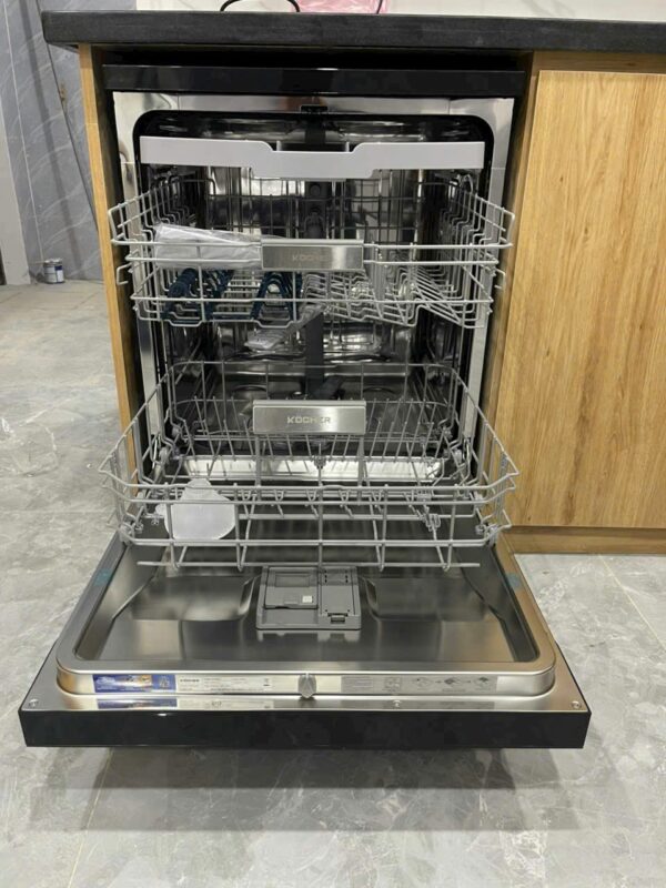 - Máy rửa bát Kocher X15B PRO sở hữu dung tích lớn, lên tới 17 bộ bát đĩa, phù hợp với các gia đình từ 4–6 người hoặc những gia đình thường xuyên có nhiều bữa ăn. Thiết kế 3 khay rửa riêng biệt, kết hợp với hệ thống khay Ultra Rack Plus thế hệ mới, giúp sắp xếp bát đĩa, xoong nồi một cách linh hoạt, đồng thời tối ưu không gian rửa theo tiêu chuẩn Châu Á. Máy có thể lắp đặt độc lập hoặc âm tủ, đi kèm hệ điều khiển cảm ứng thông minh, phím Tiếng Việt và đèn LED chiếu sáng khoang rửa, mang lại trải nghiệm sử dụng tiện lợi và hiện đại.