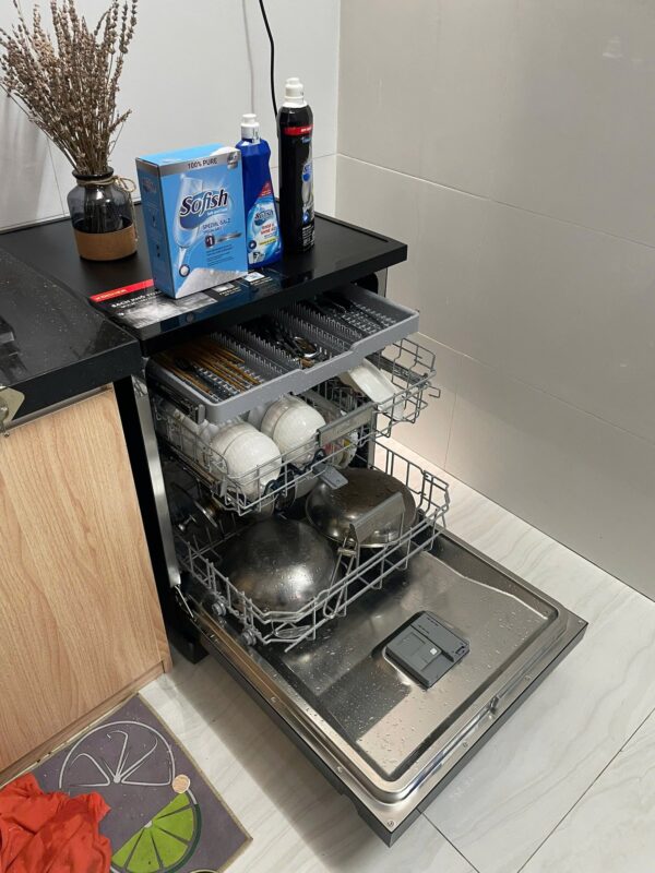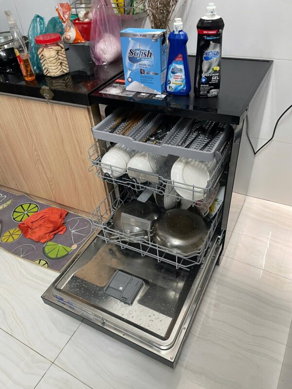 Mình mua ở đây được lắp tận nơi. Máy rửa sạch, tiết kiệm nước hơn rửa tay nhiều. Chạy cực êm, không rung, không ồn. Bên ngoài đẹp, inox sáng bóng, nhìn rất sang. Mua còn được quà hihi