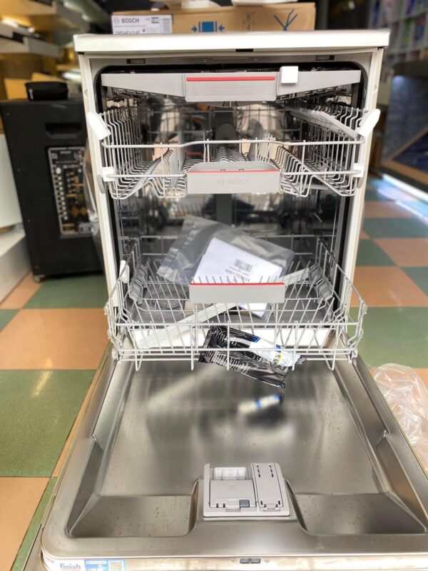 - Bosch SMS4EVI04E là model máy rửa chén độc lập được thiết kế để đáp ứng nhu cầu sử dụng cao cấp trong gia đình. Với kích thước chuẩn châu Âu (845 x 600 x 600 mm), sản phẩm phù hợp lắp đặt trong nhiều không gian bếp mà vẫn đảm bảo sự hài hòa về thẩm mỹ và công năng. Cấu trúc 3 giàn rửa với ngăn kéo Vario và hệ thống thanh gập linh hoạt giúp tận dụng tối đa thể tích bên trong, hỗ trợ xử lý lượng lớn chén bát trong một lần.