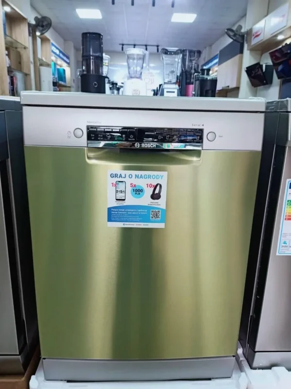 - Về mặt công nghệ, Bosch SMS4EVI04E tích hợp kết nối Wi-Fi thông qua nền tảng Home Connect, cho phép người dùng giám sát và điều khiển máy từ xa. Đây là điểm nổi bật không chỉ nâng cao trải nghiệm sử dụng mà còn giúp bạn linh hoạt sắp xếp công việc gia đình. Hệ thống này còn tương thích với trợ lý ảo như Google Assistant hoặc Amazon Alexa, tạo nên một hệ sinh thái bếp thông minh toàn diện.