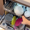 - Khả năng rửa 8 bộ bát đĩa Châu Âu: Máy có 2 khay rửa di động, khay trên dùng để rửa các vật dụng nhỏ như cốc, ly, và khay dưới dùng để rửa các vật dụng lớn như nồi, chảo, đĩa, thìa. Điều này cho phép rửa tối đa 8 bộ bát đĩa Châu Âu một lần, tiết kiệm thời gian và công sức.
