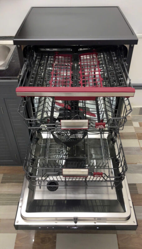 - Công nghệ hiện đại – rửa xoáy kép CrossWash 720°, diệt khuẩn UV, sấy HyperDry giúp chén bát sạch sâu và an toàn.