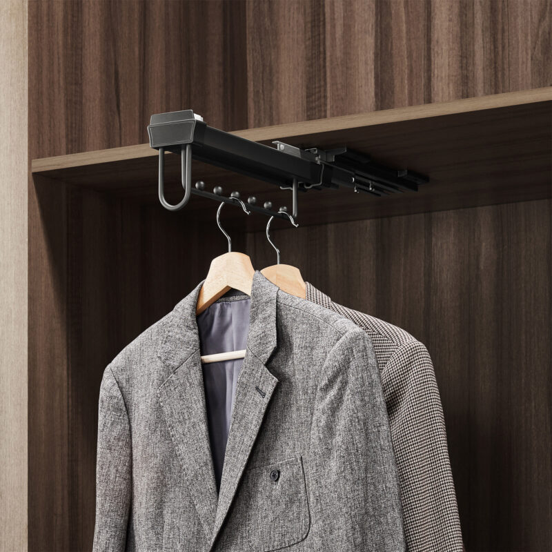 Khi lắp trong tủ cao, EAB300 giúp bạn kéo ra toàn bộ thanh treo để dễ dàng chọn – lấy đồ mà không phải với tay sâu vào trong. Điều này đặc biệt hữu ích với áo khoác, áo dài tay hoặc đồ mùa đông nặng. - Cảm giác sử dụng thoải mái, linh hoạt