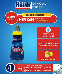 - Nước làm bóng Finish 400ml được sản xuất theo công thức đặc biệt bao gồm nhiều hoạt chất cao cấp, làm tăng độ bóng và đẩy nhanh quá trình làm khô chén đĩa khi sử dụng máy rửa chén.