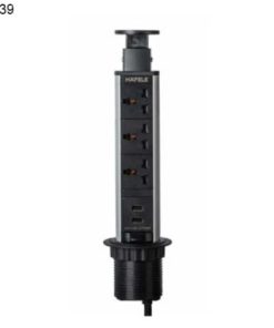 Ổ điện âm bàn hình trụ Häfele sở hữu thiết kế tiết kiệm diện tích, mang tính thẩm mỹ cao với 3 ổ cắm chuẩn quốc tế và 2