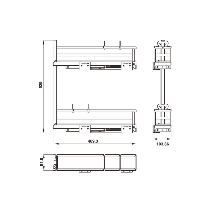Rổ kéo để chai lọ OMERO 150 Hafele 150mm phiên bản phải 549.20.840