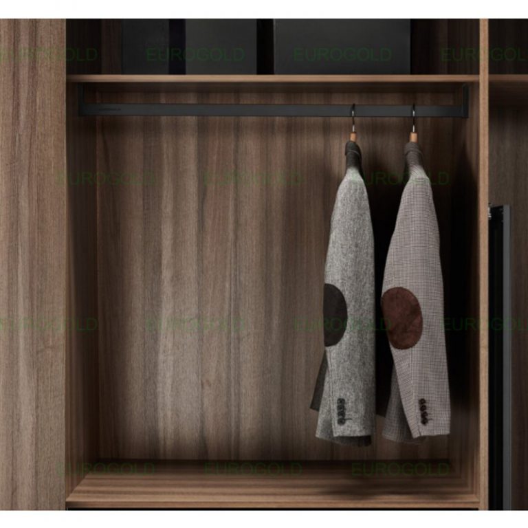 - Thanh treo được lắp đặt âm tủ, giúp tối ưu không gian sử dụng và tạo vẻ liền mạch, thẩm mỹ cho hệ tủ áo mà không chiếm diện tích lắp đặt.