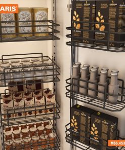 - Chất liệu bền và chịu lực: Sản phẩm được làm từ thép, giúp tăng tính bền và chịu lực. Điều này cực kỳ quan trọng khi cần lưu trữ nhiều đồ khô một cách an toàn và ổn định.