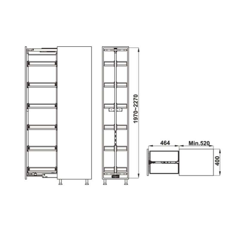Tủ đồ khô 6 tầng KARA PULL 400mm Hafele 595.80.803