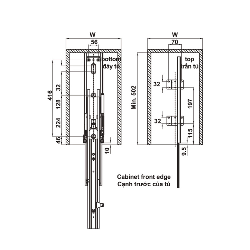 Kích thước (RxSxC) (mm): 345 x 500 x (1970-2270)