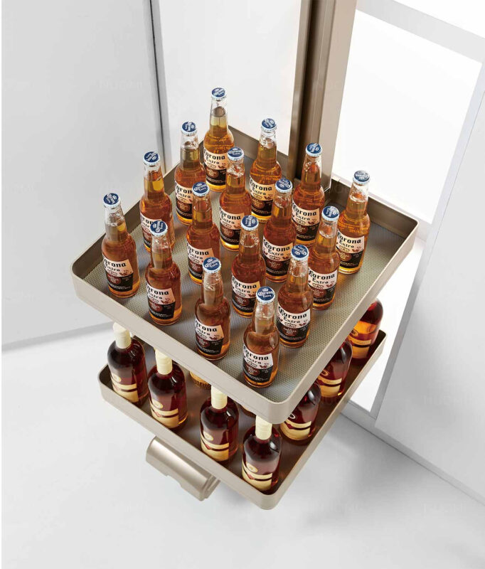 Cấu trúc 5 tầng lưu trữ được bố trí hợp lý, cho phép phân loại rõ ràng thực phẩm khô, chai lọ, gia vị và các vật dụng nhà bếp. Không gian chứa đồ rộng rãi giúp người dùng dễ dàng sắp xếp, quản lý đồ đạc gọn gàng, tiết kiệm thời gian tìm kiếm và nâng cao hiệu quả sử dụng. - Ray trượt êm ái – vận hành nhẹ nhàng, ổn định