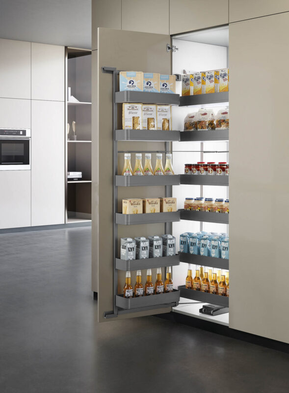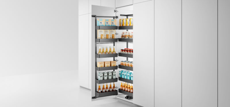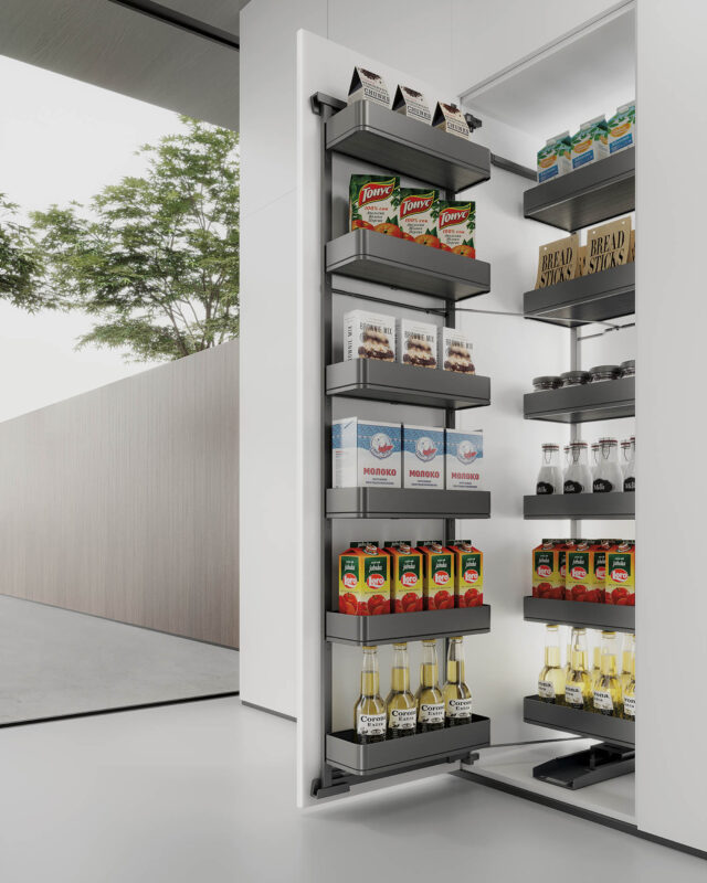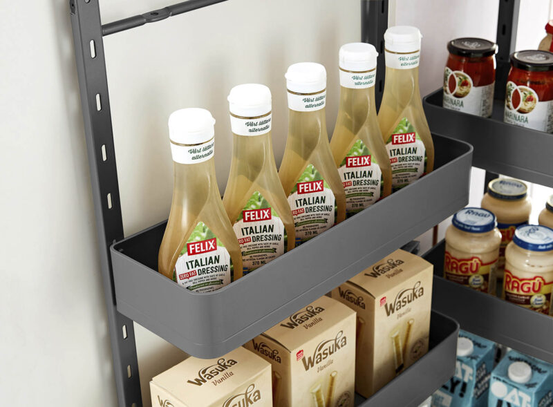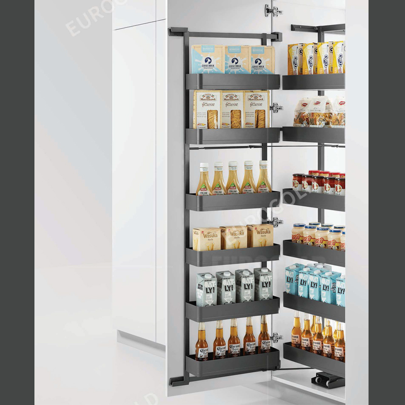 Cấu trúc 6 tầng được bố trí hợp lý, cho phép phân loại rõ ràng thực phẩm khô, chai lọ, gia vị và đồ dùng nhà bếp. Không gian lưu trữ rộng rãi giúp căn bếp luôn gọn gàng, ngăn nắp, đồng thời tiết kiệm thời gian tìm kiếm và nâng cao hiệu quả sử dụng.