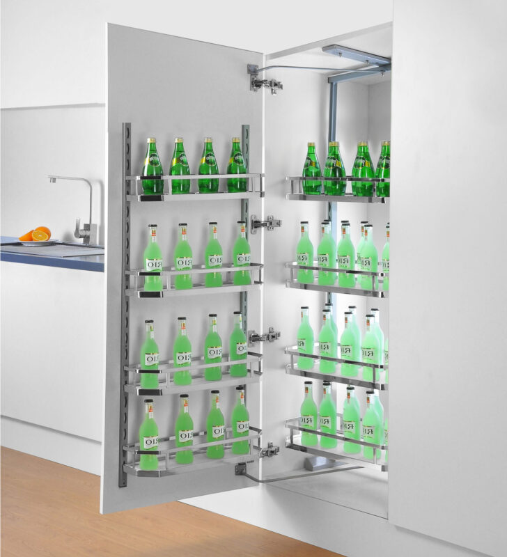Tủ kho được thiết kế để lắp âm vào khoang tủ rộng 600 mm, phù hợp với nhiều hệ tủ bếp phổ biến hiện nay. Thiết kế thuận tiện giúp việc thi công nhanh chóng, đồng thời các rổ chứa có thể tháo rời giúp vệ sinh đơn giản và nhanh chóng khi cần.