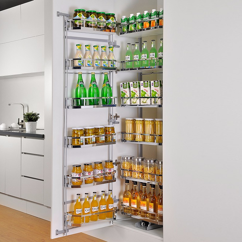 Hệ thống ray trượt đôi giảm chấn mang lại thao tác kéo mở nhẹ nhàng và êm ái, hạn chế tiếng ồn khi sử dụng hàng ngày. Thiết kế liên kết giữa rổ và cánh giúp chuyển động trơn tru và vận hành ổn định ngay cả khi chứa nhiều đồ đạc.