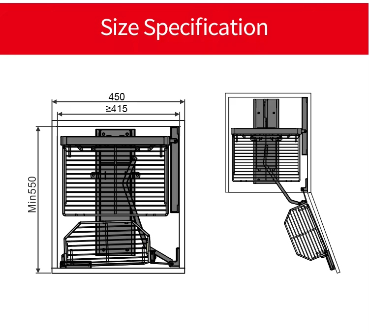 - Cơ chế vận hành: Liên kết cánh mở – kéo toàn bộ rổ ra ngoài chỉ với một thao tác