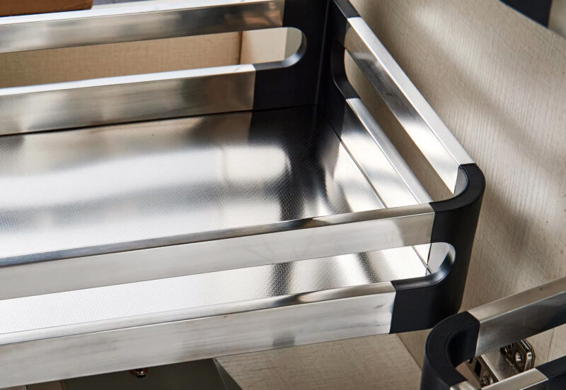 Các rổ chứa có thể dễ dàng tháo rời khỏi tủ khi cần vệ sinh, giúp bạn làm sạch rổ và khoang tủ nhanh chóng — điều rất quan trọng để giữ môi trường bếp luôn sạch sẽ và đảm bảo vệ sinh thực phẩm. Đồng thời, thiết kế này giúp việc bảo trì sản phẩm theo thời gian cũng trở nên đơn giản hơn.