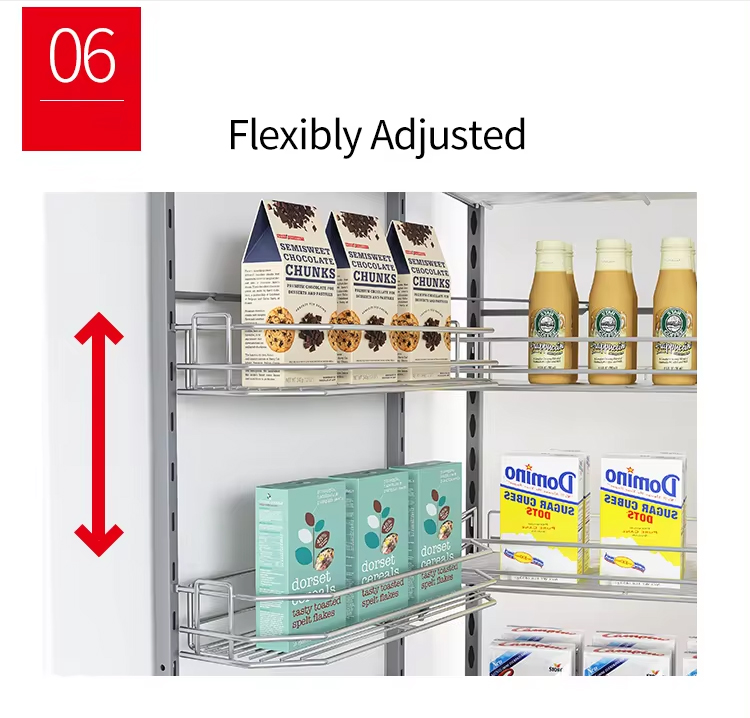 Tủ kho nan tròn cánh mở Eurogold EKT11645 được thiết kế dành riêng cho tủ bếp rộng 450mm, tận dụng triệt để không gian theo chiều cao với kích thước W415D500H(>1720). Kiểu dáng âm tủ gọn gàng giúp tổng thể không gian bếp trở nên liền mạch, ngăn nắp và hiện đại, đặc biệt phù hợp với những căn bếp cần tăng khả năng lưu trữ mà vẫn đảm bảo tính thẩm mỹ. - Kết cấu 6 tầng rộng rãi – Phân loại khoa học, dễ sử dụng