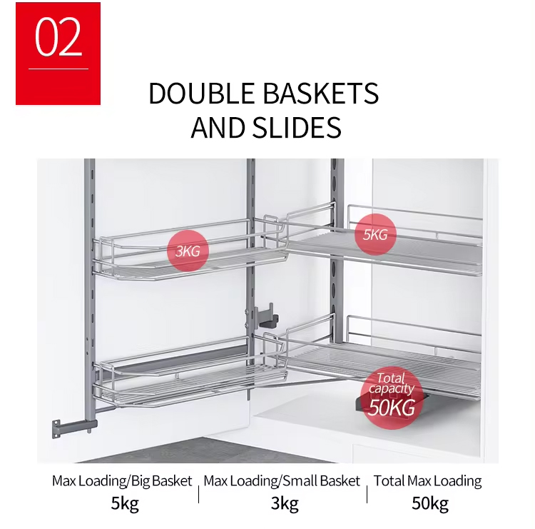 Hệ ray trượt chất lượng cao giúp thao tác đóng mở tủ nhẹ nhàng, êm ái và hạn chế tối đa tiếng ồn. Ray vận hành ổn định ngay cả khi tủ chứa nhiều đồ, mang lại cảm giác chắc chắn và an toàn, giúp trải nghiệm sử dụng trở nên thoải mái hơn cho người nội trợ. - Khóa an toàn tiện lợi – Linh hoạt với nhiều không gian bếp