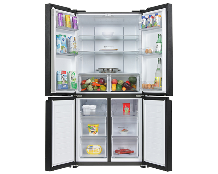 Tủ lạnh sở hữu thiết kế Multi Door 4 cửa độc lập, giúp phân chia thực phẩm khoa học và hạn chế thất thoát hơi lạnh khi mở cửa. Mặt kính màu đen cao cấp mang đến vẻ ngoài hiện đại, dễ lau chùi và giữ được độ sáng bóng lâu dài. Dung tích 469 lít phù hợp cho gia đình từ 4–5 thành viên.