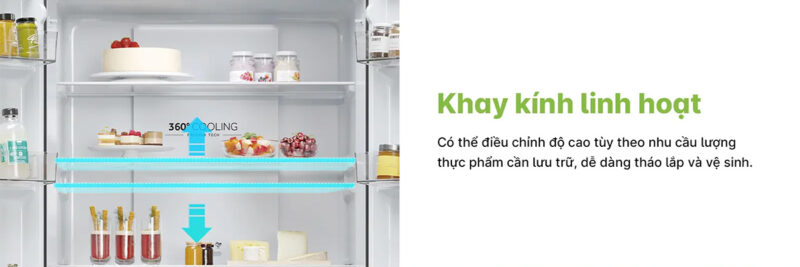 - Khay kính chịu lực, linh hoạt điều chỉnh
