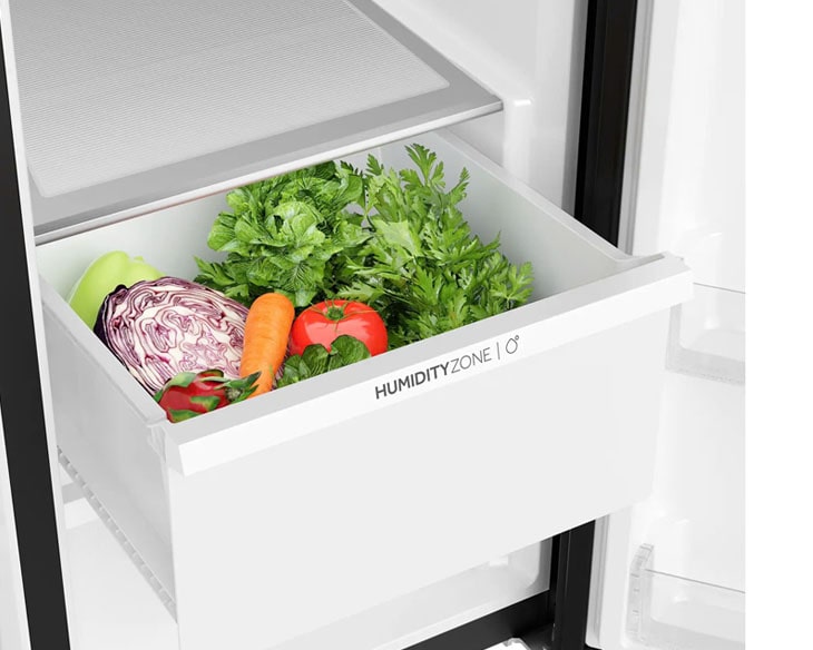 Ngăn rau củ riêng biệt được trang bị màng lọc HCS giúp duy trì độ ẩm ổn định khoảng 90%. Rau củ và trái cây luôn giữ được độ mọng nước, tươi lâu và hạn chế héo úa. Đây là giải pháp lý tưởng cho nhu cầu bảo quản thực phẩm tươi sống hàng ngày.