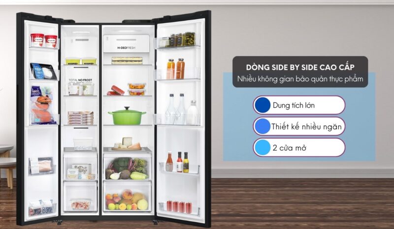 - Thiết kế Side by Side sang trọng, dung tích lớn
