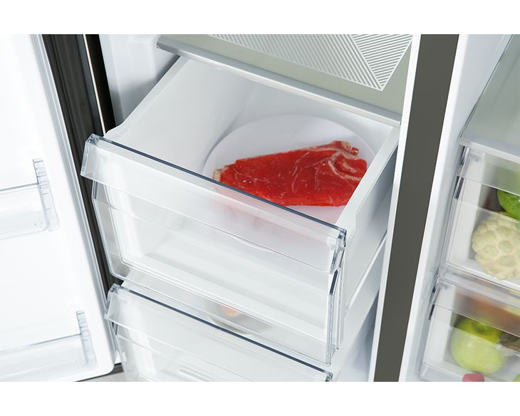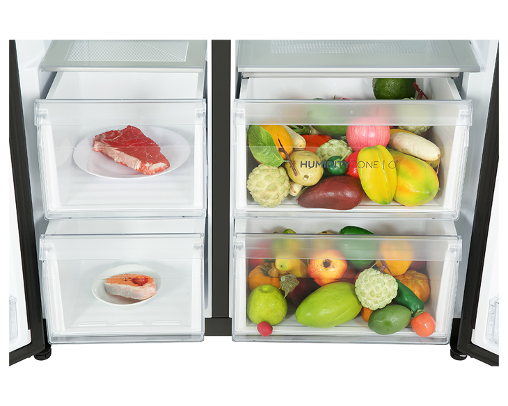 Ngăn rau củ tích hợp công nghệ cân bằng độ ẩm HCS duy trì độ ẩm tối ưu lên đến 90%. Rau củ, trái cây giữ được độ tươi, hạn chế héo úa trong thời gian dài. Giải pháp lý tưởng cho người dùng thường xuyên dự trữ thực phẩm tươi.