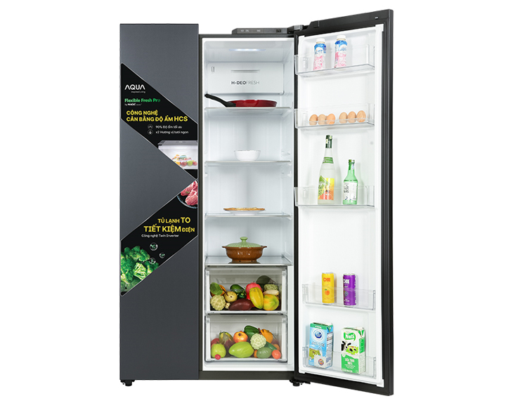 - Aqua AQR-S682XA(SLB) còn ghi điểm với công nghệ Twin Inverter giúp tiết kiệm điện năng, vận hành êm ái và bền bỉ. Công nghệ kháng khuẩn khử mùi H-DEO Fresh giúp loại bỏ mùi hôi, ức chế vi khuẩn, đảm bảo không gian bên trong tủ luôn sạch sẽ và an toàn cho sức khỏe gia đình.