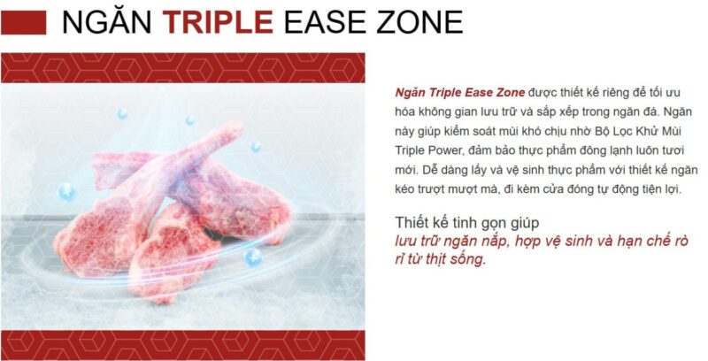 - Ngăn kháng khuẩn Triple Ease Zone kết hợp bộ lọc Triple Power