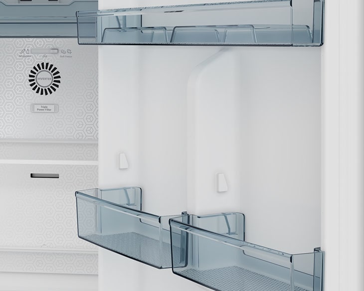- Sản phẩm được trang bị công nghệ làm lạnh vòng cung Dual Sense, giúp luồng khí lạnh lan tỏa đồng đều khắp các ngăn. Nhờ đó, thực phẩm được làm lạnh nhanh, duy trì độ tươi ngon lâu hơn và hạn chế tình trạng chênh lệch nhiệt độ. Kết hợp bộ lọc Triple Power, tủ lạnh mang lại khả năng kháng khuẩn, khử mùi hiệu quả, giữ không gian bên trong luôn sạch sẽ.