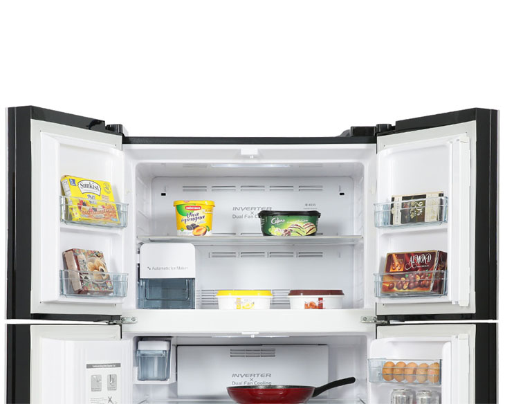 - Tủ lạnh Hitachi Inverter 540 lít R-FW690PGV7X(GBK) gây ấn tượng với thiết kế 4 cánh Big French sang trọng, ngăn đông trên tiện lợi và mặt kính đen cao cấp hiện đại. Bảng điều khiển cảm ứng đặt phía trước giúp thao tác nhanh chóng, đồng thời tạo điểm nhấn tinh tế cho không gian bếp. Kiểu dáng vuông vức, chắc chắn phù hợp với những căn bếp cao cấp.