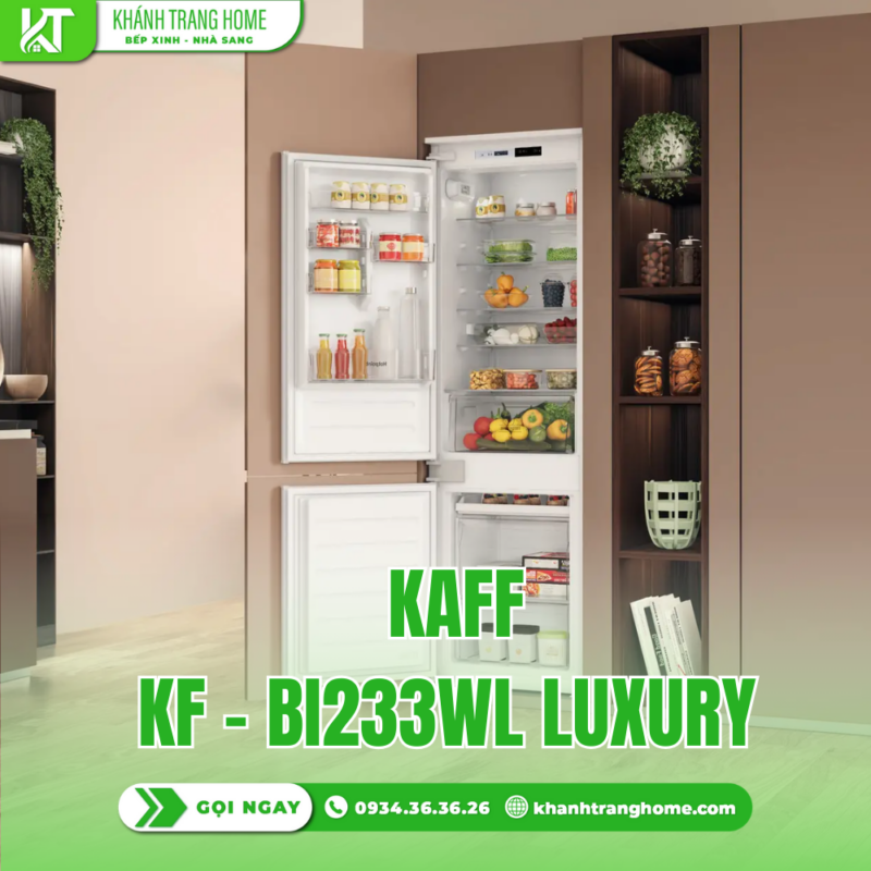 - Tủ lạnh KAFF KF-BI233WL Luxury là lựa chọn lý tưởng cho những không gian bếp cao cấp, nơi đề cao sự tinh gọn, đồng bộ và hiệu quả sử dụng lâu dài. Với thiết kế âm toàn phần 2 cánh, sản phẩm cho phép lắp đặt chìm hoàn toàn vào hệ tủ bếp và dễ dàng ốp cánh décor mặt gỗ theo phong cách riêng, mang lại tổng thể liền mạch, sang trọng và chuẩn thiết kế châu Âu.
