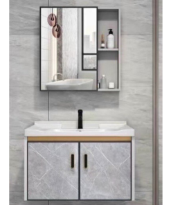 - Chất liệu nhôm mạ tĩnh điện mang lại độ bền cao và khả năng chống ăn mòn, phù hợp cho môi trường ẩm ướt trong phòng tắm. Thiết kế treo tường giúp tiết kiệm không gian và tạo điểm nhấn thẩm mỹ, đồng thời cũng dễ dàng vệ sinh dưới tủ.