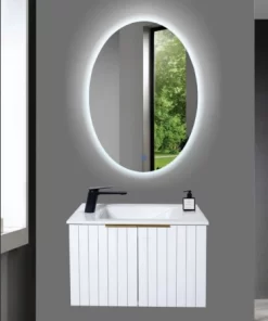 - Gương oval (500 x 700 mm) với đèn LED cảm ứng, không chỉ làm đẹp không gian mà còn tăng cường ánh sáng và tính tiện ích.