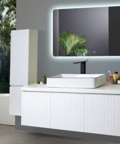 - Tính năng thông minh của tủ không chỉ giới hạn ở chức năng chậu rửa mà còn mở rộng đến không gian lưu trữ bên dưới tủ, mang lại sự tiện ích cho người sử dụng. Gương LED cảm ứng kích thích ánh sáng mềm mại và thoải mái trong phòng tắm.