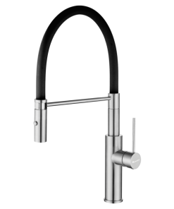 Bằng phối màu độc đáo Black – Nickel – đây là sản phẩm Konox ưu ái phát triển riêng cho những gian bếp hướng đến phong cách cá tính, khỏe khoắn. Vòi rửa bát thân mềm KN1618 được thiết kế theo mẫu mã cần vòi mềm, có khả năng tháo rời, di chuyển linh hoạt. Dáng vòi cao giúp thao tác làm bếp, đặc biệt là với dụng cụ bếp to dưới vòi không hề vướng víu. Model KN1618 là sản phẩm duy nhất trong bộ sưu tập vòi thân mềm được trang bị nút chuyển, 2 chế độ xả: chế độ phun mua, và chế độ tạo bọt