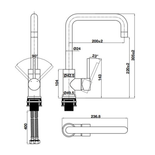 THÔNG SỐ KỸ THUẬT Vòi rửa chén Hafele HT21-CH1F220U 577.55.250